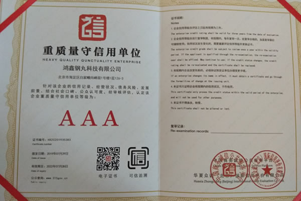 武漢鴻鑫立信金屬制品有限公司主要從事鋼丸、鋼絲切丸、鋼砂等除銹防腐耗材的生產(chǎn)和銷售。公司所有產(chǎn)品均通過ISO9001**質(zhì)量認證,2014年更獲得了第三屆中國金屬磨料行業(yè)具有影響力品牌-華尊獎。董事長陳群芝女士從事行業(yè)17年來專注為客戶節(jié)約鋼丸消耗成本,2014年獲得了華尊獎-中國品牌建設(shè)實踐百名創(chuàng)新很好企業(yè)家的榮譽。服務(wù)過的國家建設(shè)項目有:北京鳥巢體育館、遼寧號航母、杭州灣跨海大橋、南海軍艦、成都雙流**機場、南車集團動車檢測中心、武漢火車站、武漢天興洲大橋等,同時服務(wù)的行業(yè)囊括橋梁制造、船舶制造、汽車制造、火車車輛制造、大理石打磨、鑄件清砂、各種機械制造表面清理等。鴻鑫鋼丸,值得信賴。